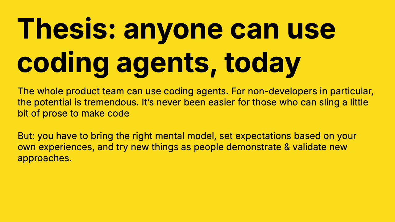 This is an expansion of a talk I did for Portland AI Engineers in October. The gist of which was, coding agents are for the whole product team. Not just coders!
